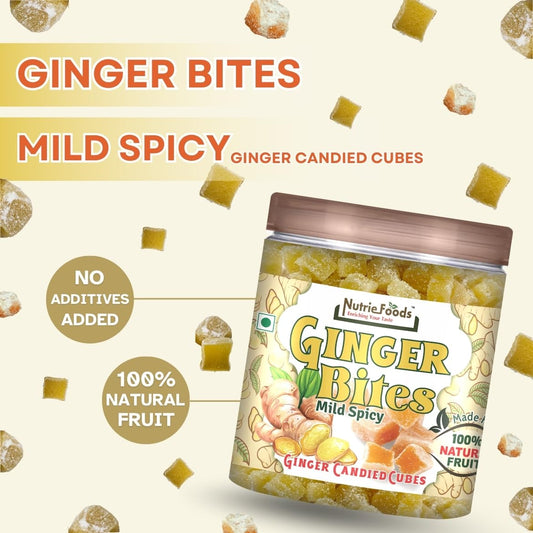 Ginger Bites | Ginger Candied Sweet & Mild Spicy Cubes | 100% Natural, No additives added | Original Flavor (250g)
