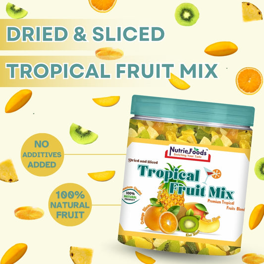 Nutriefoods Tropical Dried Fruit Mix, 100% Natural Blend of Dried Mango, Kiwi, Pineapple, and Oranges (250g)