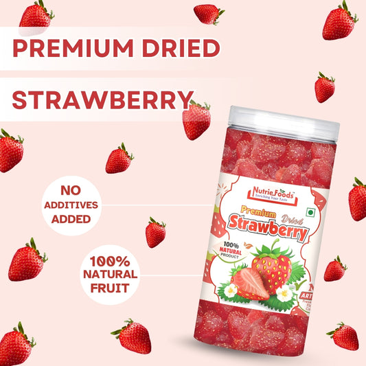 Nutriefoods Premium Dried Strawberry | No Added Artificial Colors, Flavors | 100% Natural Fruit Bites (200g)