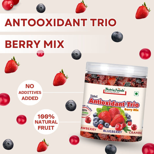 Nutriefoods Antioxidant Trio Berry Mix | Blended with Dried Strawberry, Blueberry and Cranberry