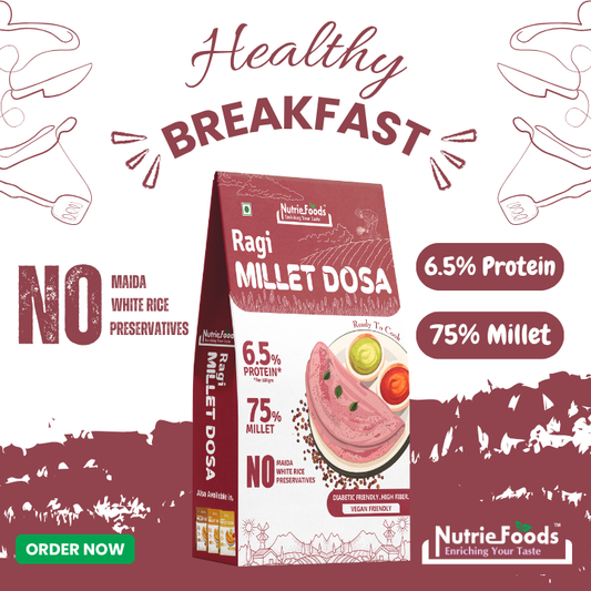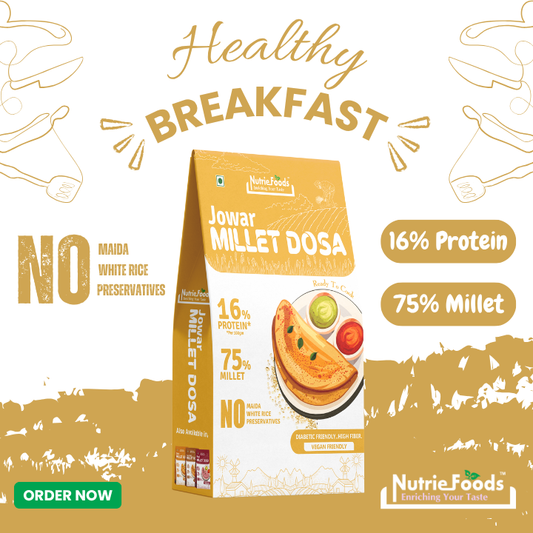 Nutriefoods Millet Pancakes Mix, 0% Maida, Contains Millets (46%)- Jawar, Amaranath and Foxtail; Oats (19%), Gluten Free, Vanilla (150gm)