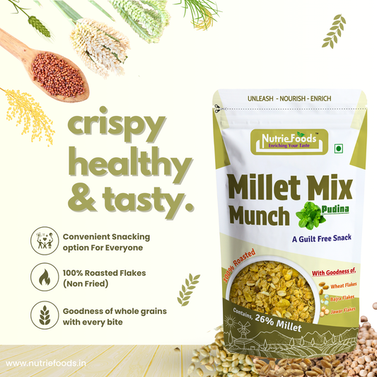 Millet Mix Munch- Pudina, Blend of Jowar, Wheat, and Bajra Flakes (100gm)