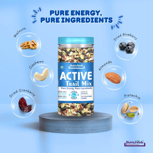 Nutriefoods Active Trail Mix | Blend of Almonds, Walnuts, Pistachio, Cashews, Cranberry and Blueberry (150g)