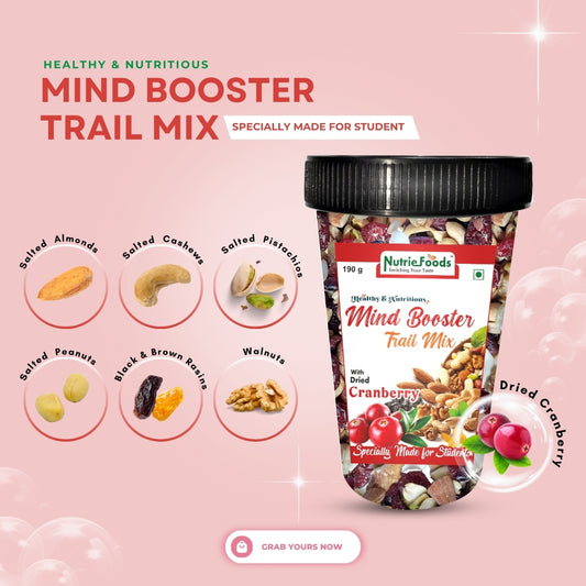 Nutriefoods Nutritious Mind Booster Roasted Snack Trail Mix With Dried Cranberries | Blend of Dried Fruits & Nuts (190gm)