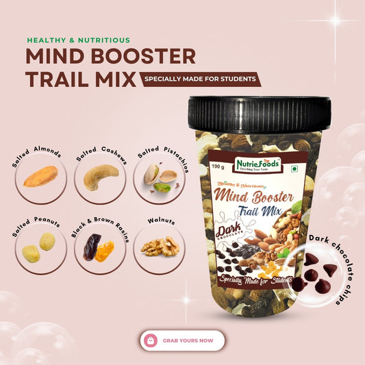 Nutriefoods Nutritious Mind Booster Roasted Snack Trail Mix With Dark Chocolate Chunks | Blend of Dried Fruits & Nuts (190gm)