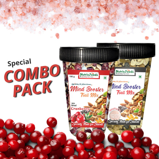 Nutriefoods Nutritious Mind Booster Roasted Snacks Trail Mix, Combo Pack of Dried Cranberries & Classic Salt (380g)