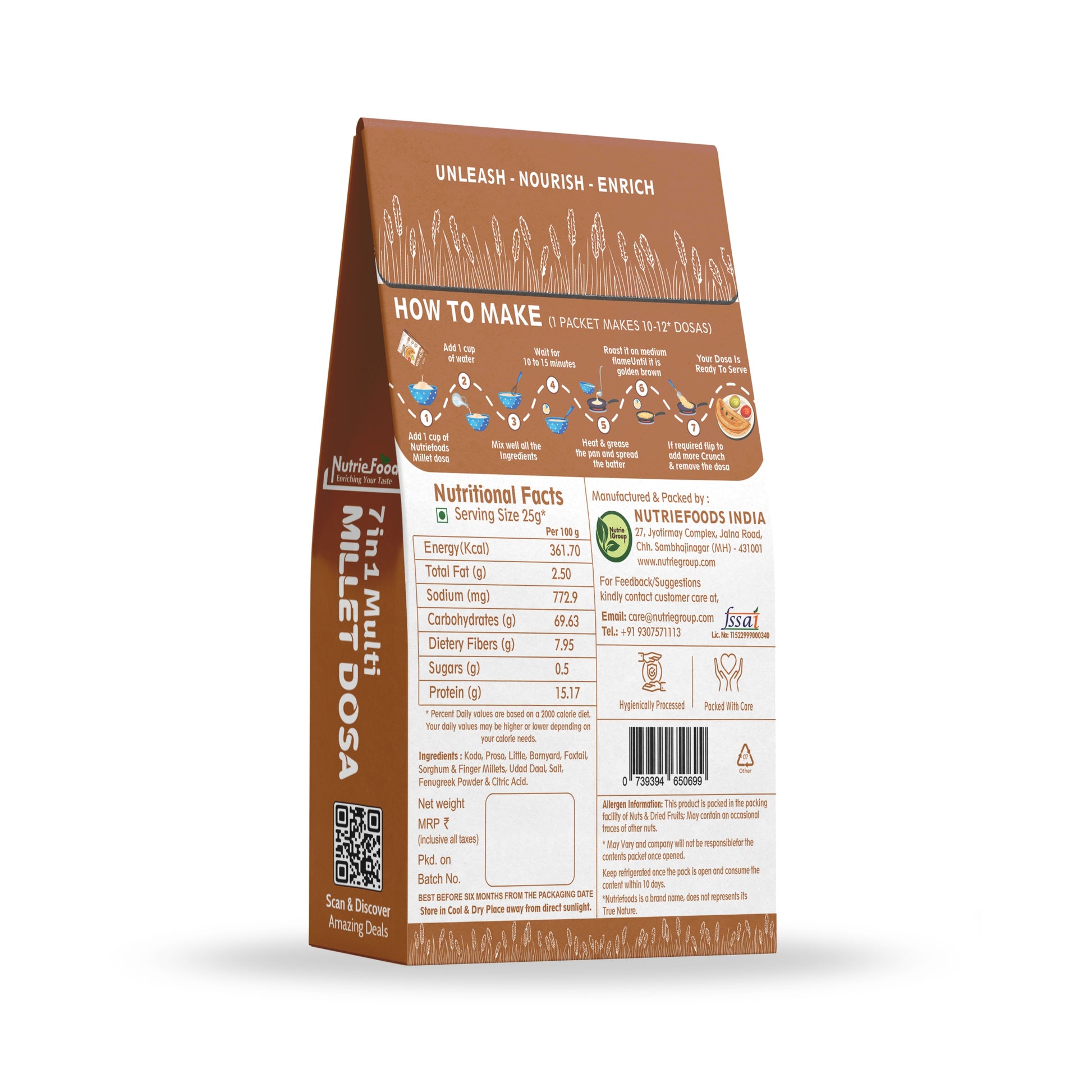 Enjoy a super healthy, high-protein breakfast in just 10 minutes with Nutriefoods Millet Dosa & Chilla Mix! Made with 75% nutrient-rich millets, this instant Ready to cook mix is packed with essential nutrients, making it the perfect choice for a busy lifestyle. Whether you're a working professional, a fitness enthusiast, or a parent looking for a kid-friendly, delicious meal, this mix has you covered.ย ย