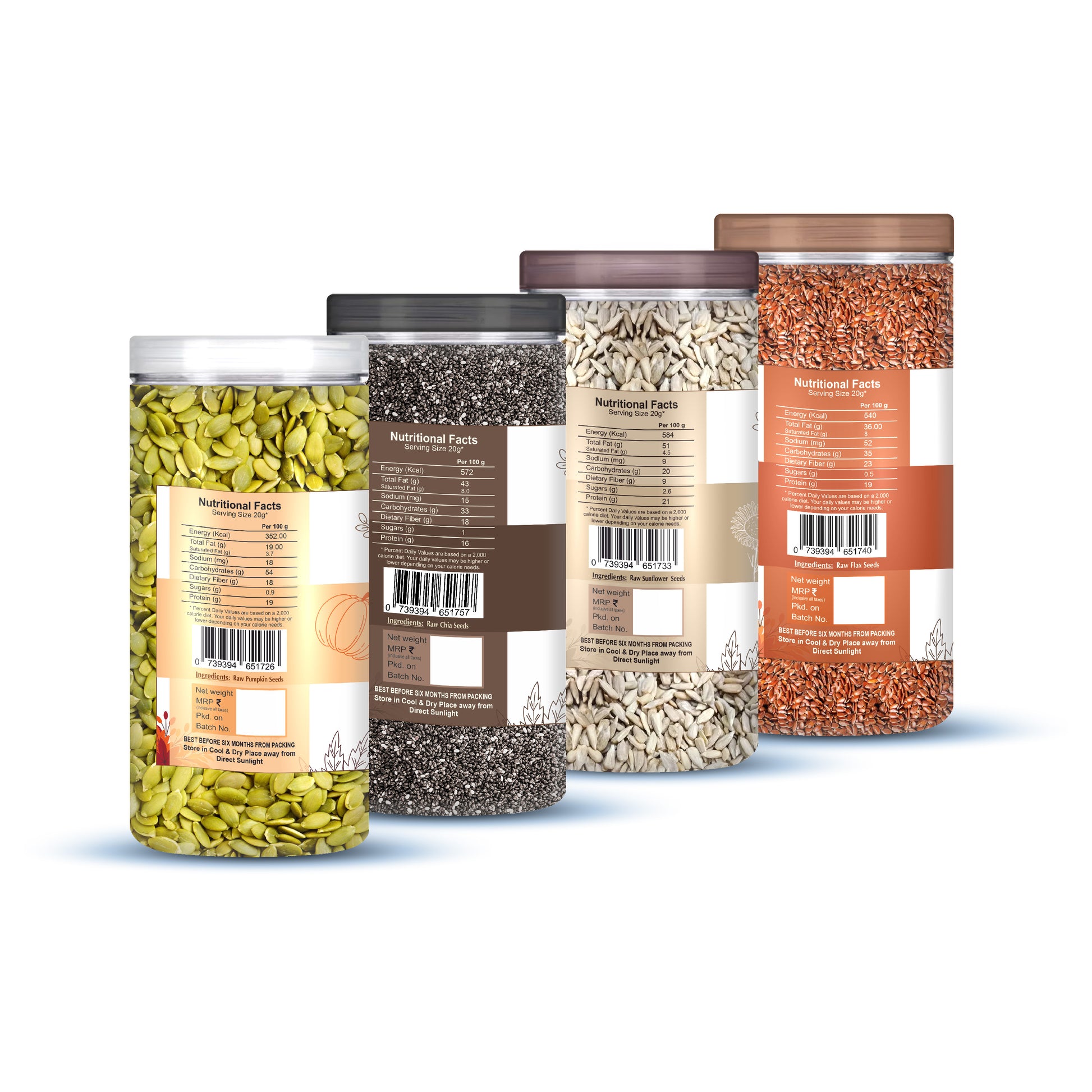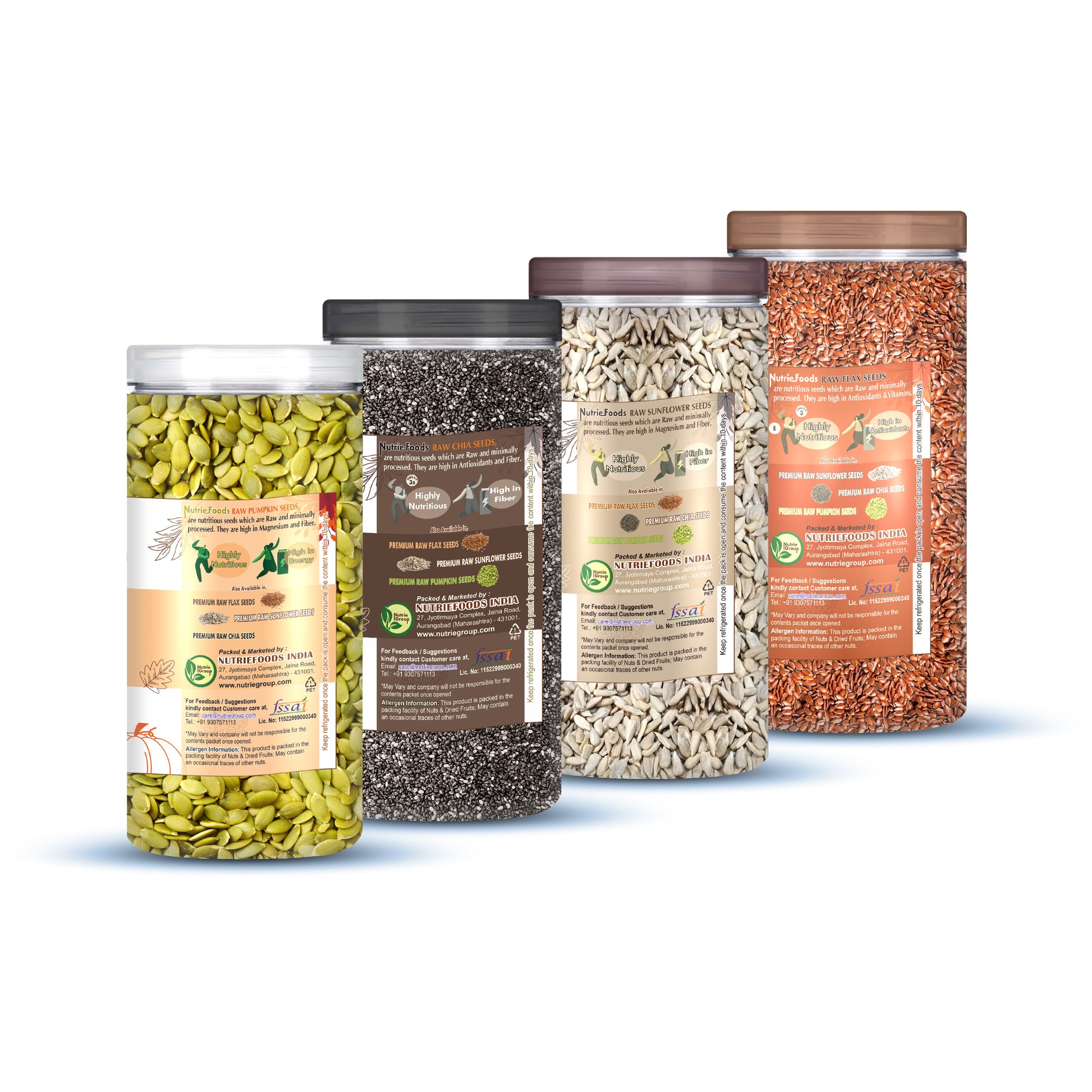 Nutriefoods 100% Raw Premium Pumpkin, Chia, Sunflower, and Flax Seeds Combo (800g)