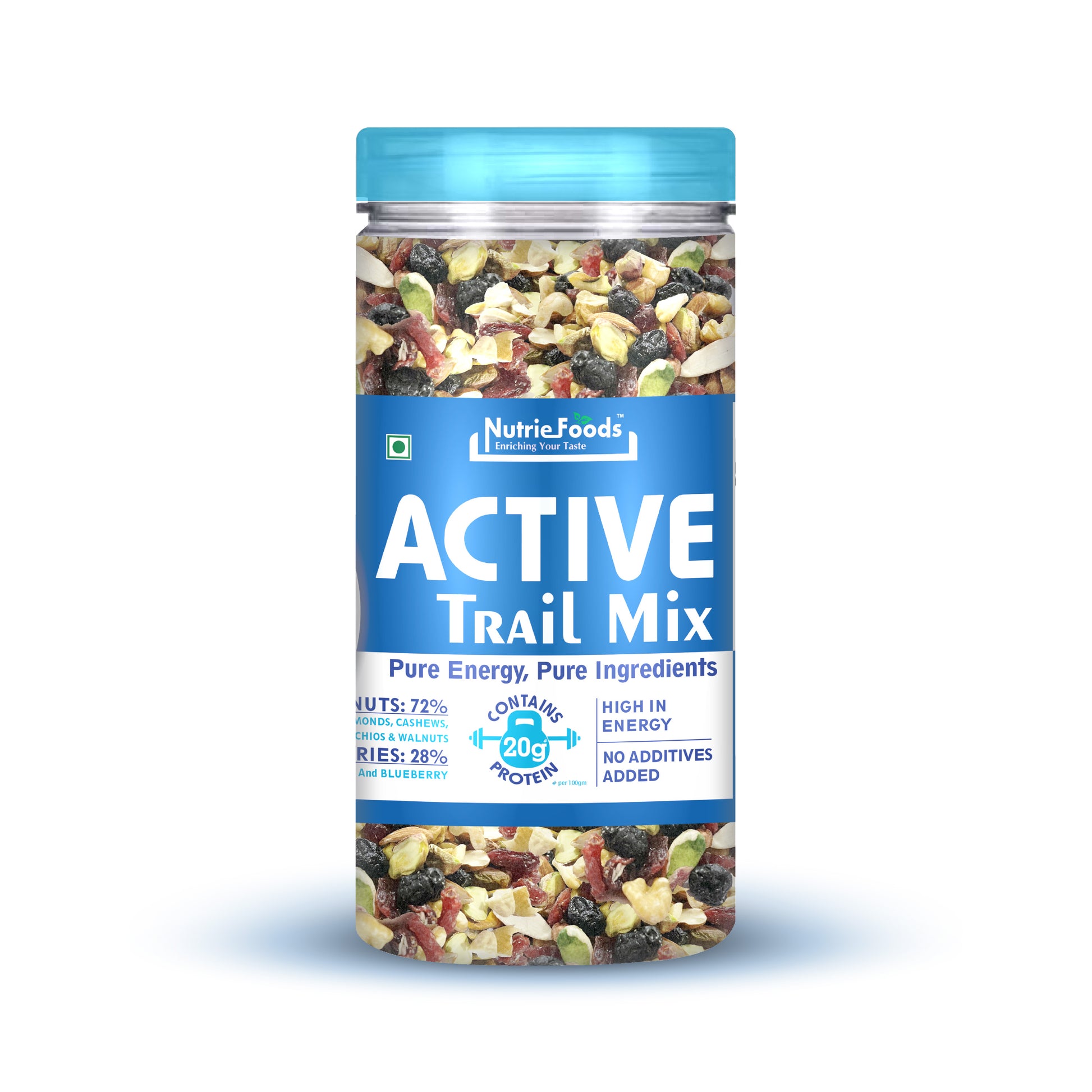 Embark on a flavorful journey with our Active Trail Mix, a meticulously crafted blend of nature's best offerings! Packed with a dynamic mix of premium cashews, pistachios, almonds, walnuts, cranberries, and blueberries, this energizing medley is designed to fuel your active lifestyle. Each handful is a wholesome fusion of protein, healthy fats, and antioxidants, providing a deliciously satisfying snack that supports your vitality. Whether you're hitting the trails, powering through a workout, or simply craving a nutritious pick-me-up, our Active Trail Mix is your go-to companion for taste, energy, and well-rounded nourishment. Grab a bag and elevate your snacking experience with this vibrant mix of goodness!