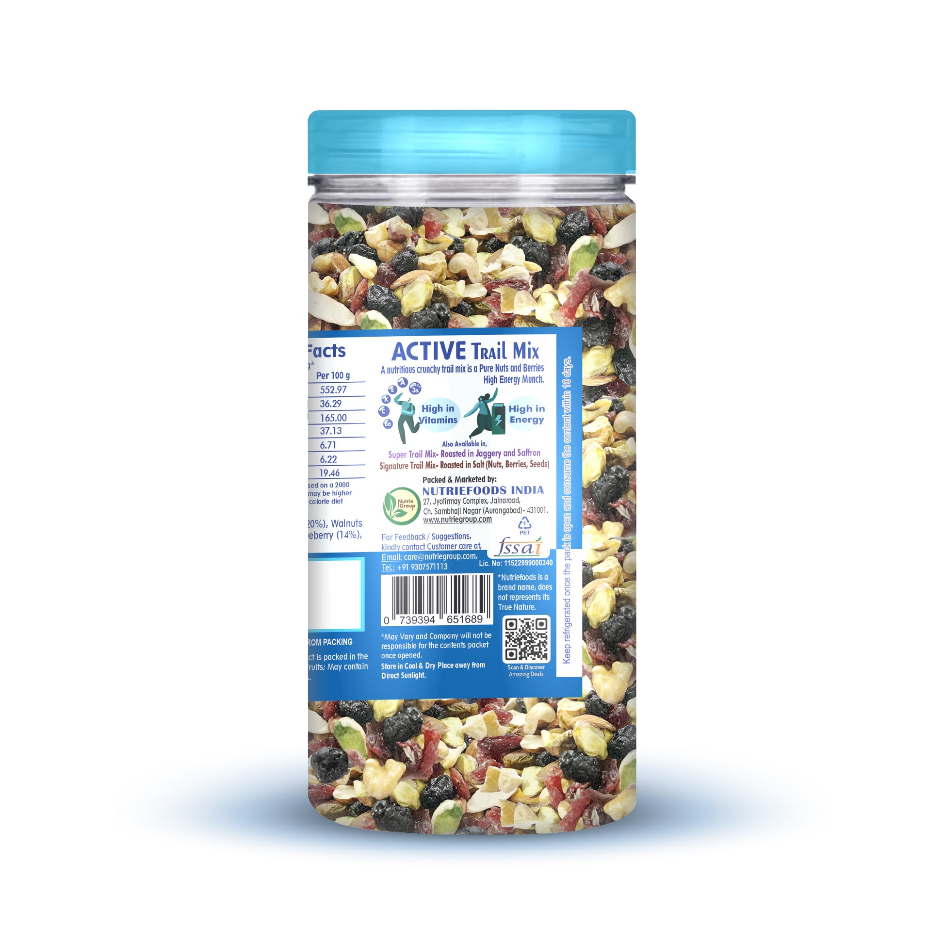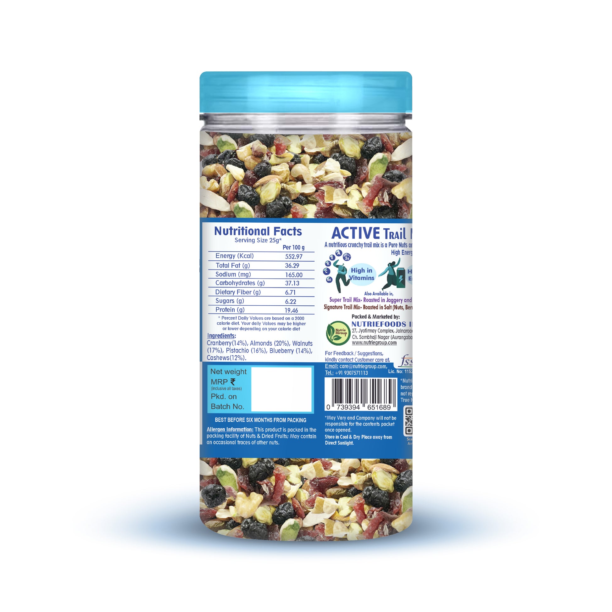 Nutriefoods Active Trail Mix | Blend of Almonds, Walnuts, Pistachio, Cashews, Cranberry and Blueberry (150g)