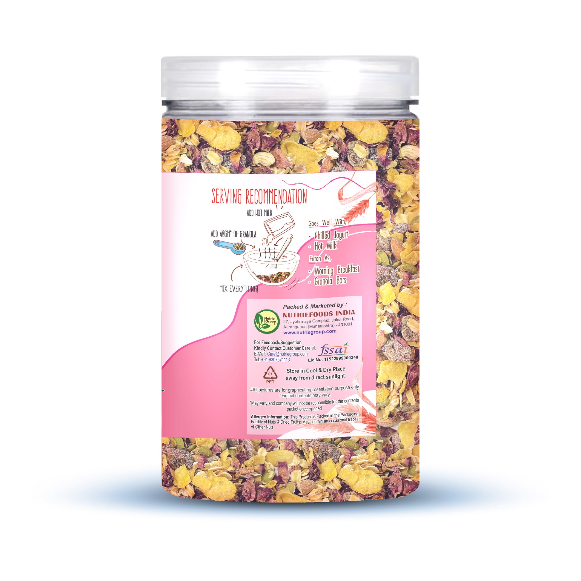 Nutriefoods Energy Booster Oat Meal (Granola) with Rose Petals | Blend of Oats, Berries, Dried Fruits, Nuts, and Seeds (400gm)