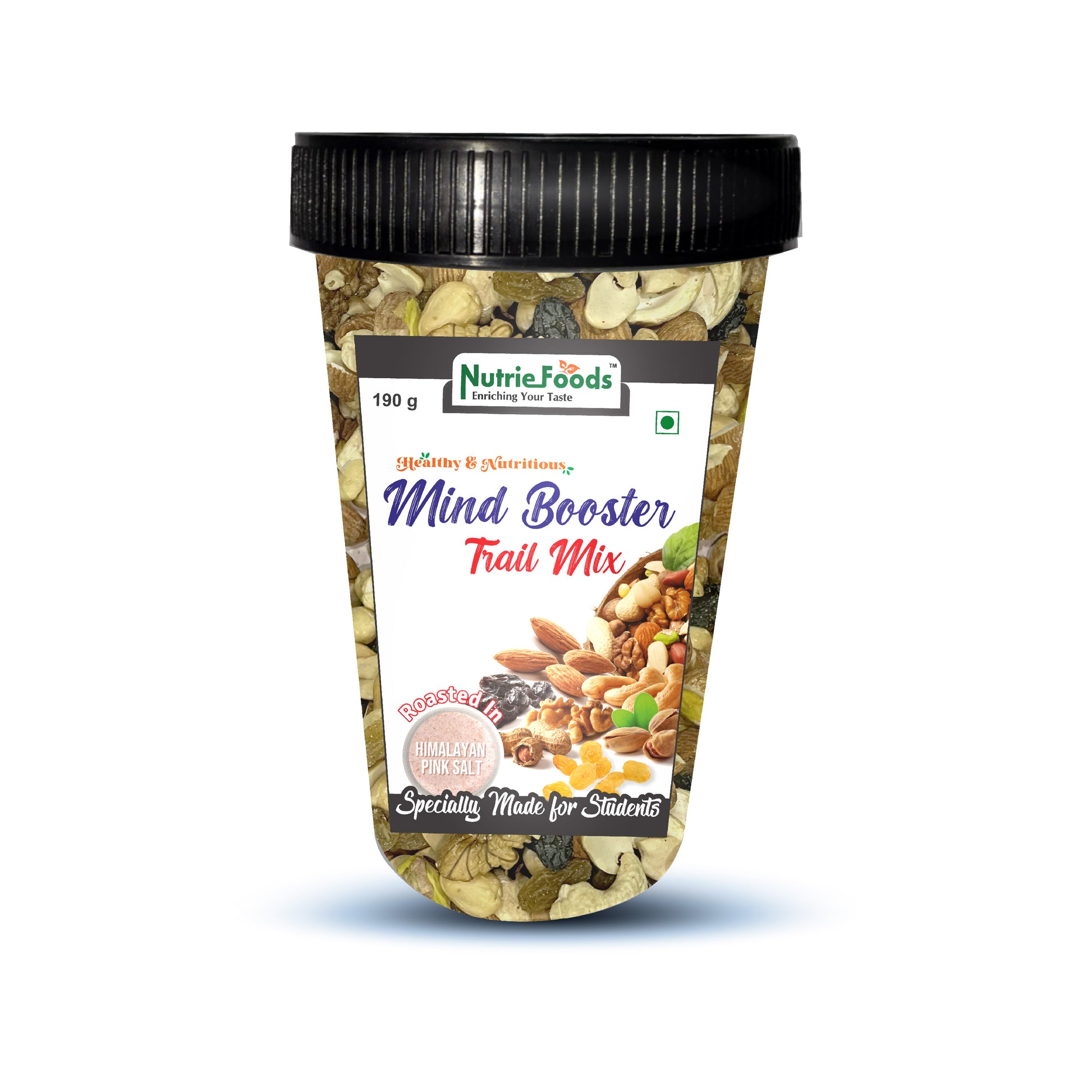 Experience the Nutriefoods Nutritious Mind Booster Trail Mix, carefully crafted with a selection of premium ingredients including roasted peanuts, almonds, cashews, pistachios, walnuts, dried fruits- brown, and black raisins. Indulge in this perfect blend of flavours and nutrients, designed to be a wholesome snack option for you and your loved ones.