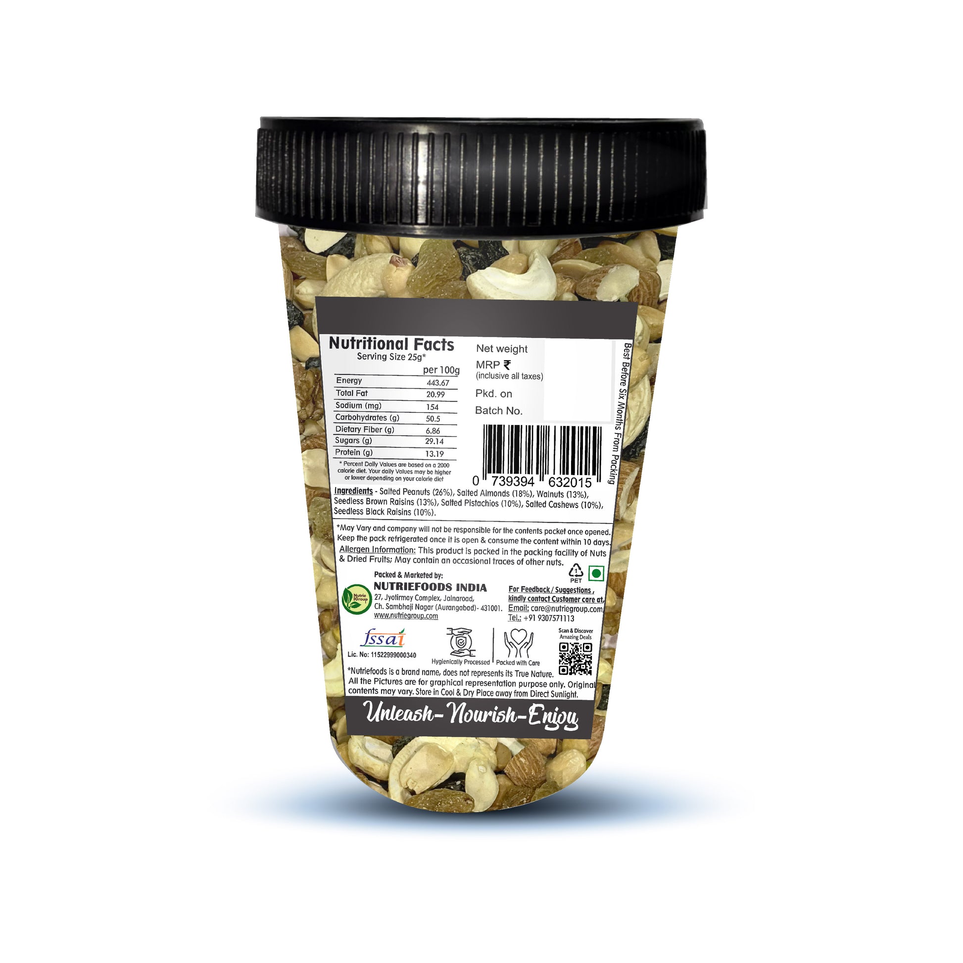 Nutriefoods Nutritious Mind Booster Roasted Snack Trail Mix With Classic Salt | Blend of Dried Fruits & Nuts (190gm)