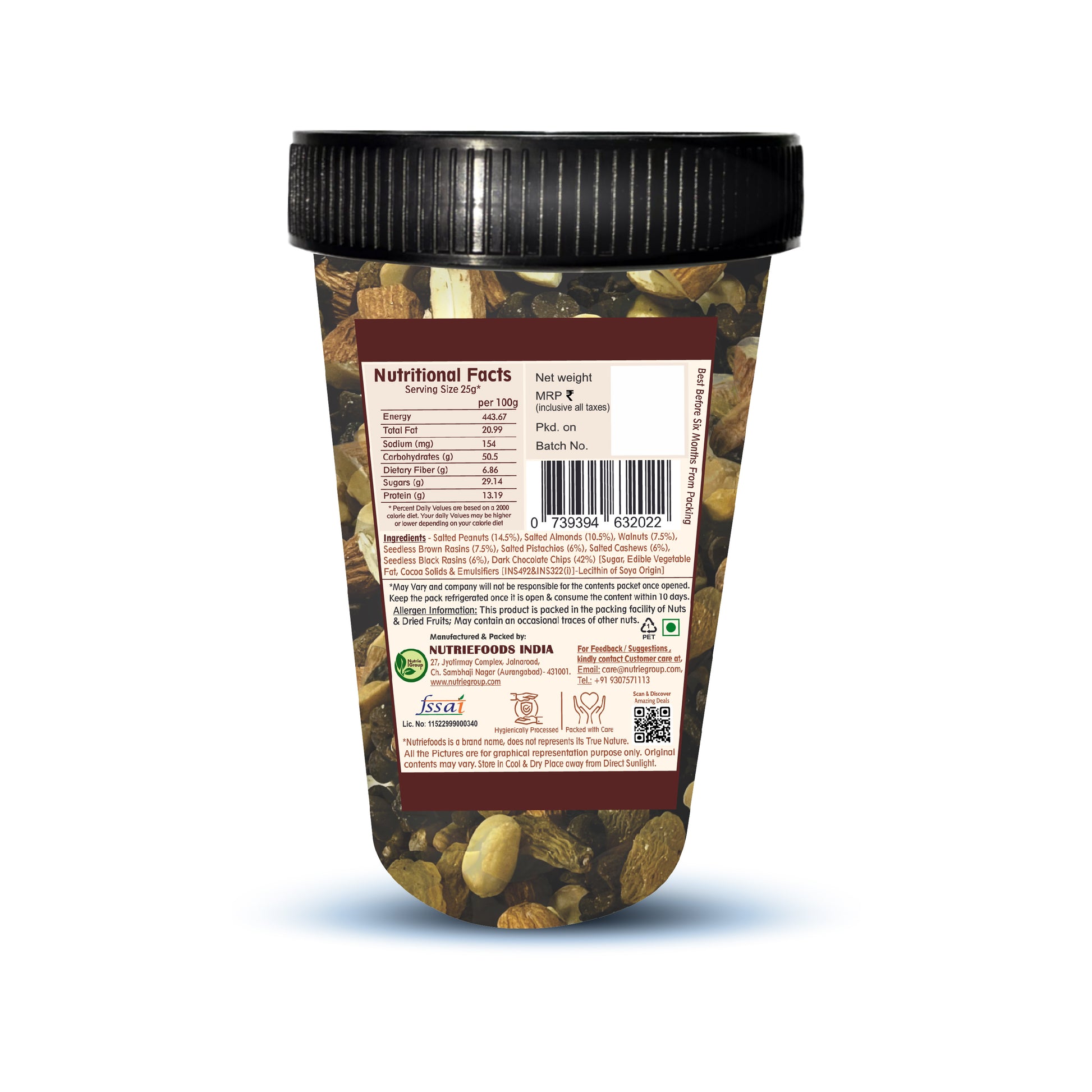Nutriefoods Nutritious Mind Booster Roasted Snack Trail Mix With Dark Chocolate Chunks | Blend of Dried Fruits & Nuts (190gm)