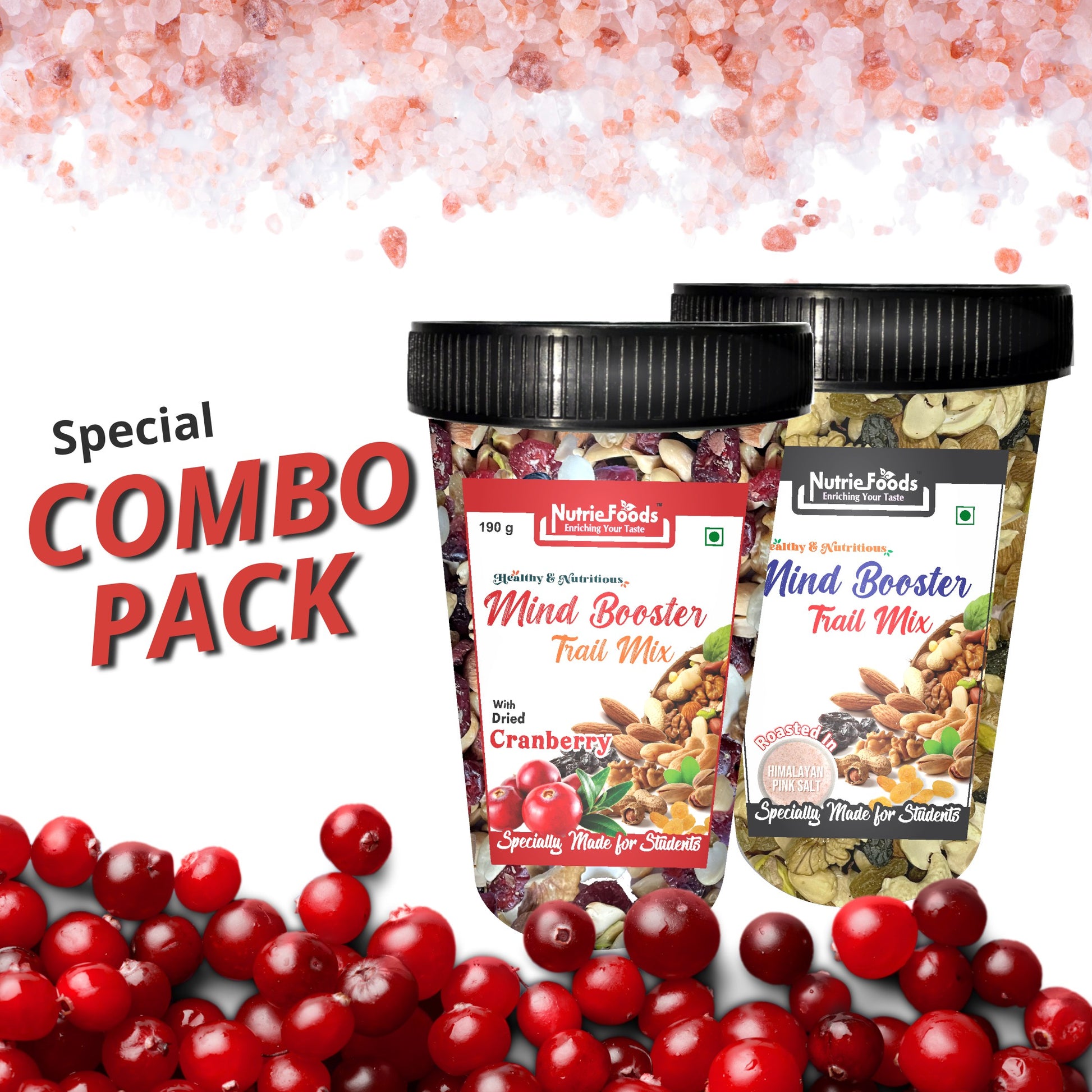 Nutriefoods Nutritious Mind Booster Roasted Snacks Trail Mix, Combo Pack of Dried Cranberries & Classic Salt (380g)