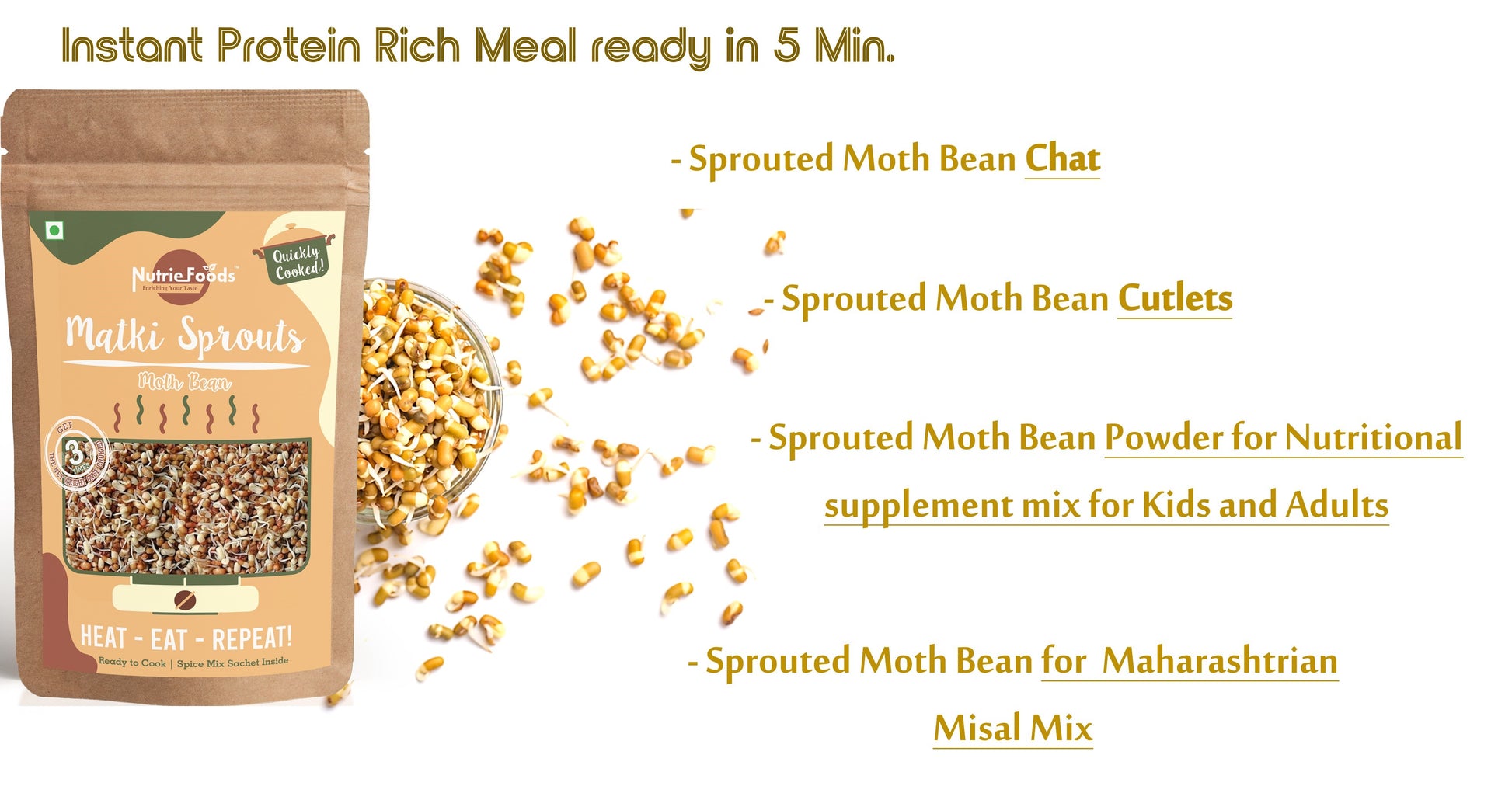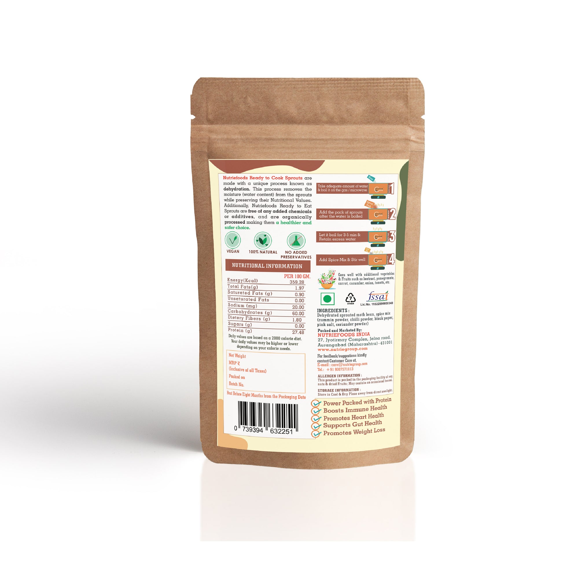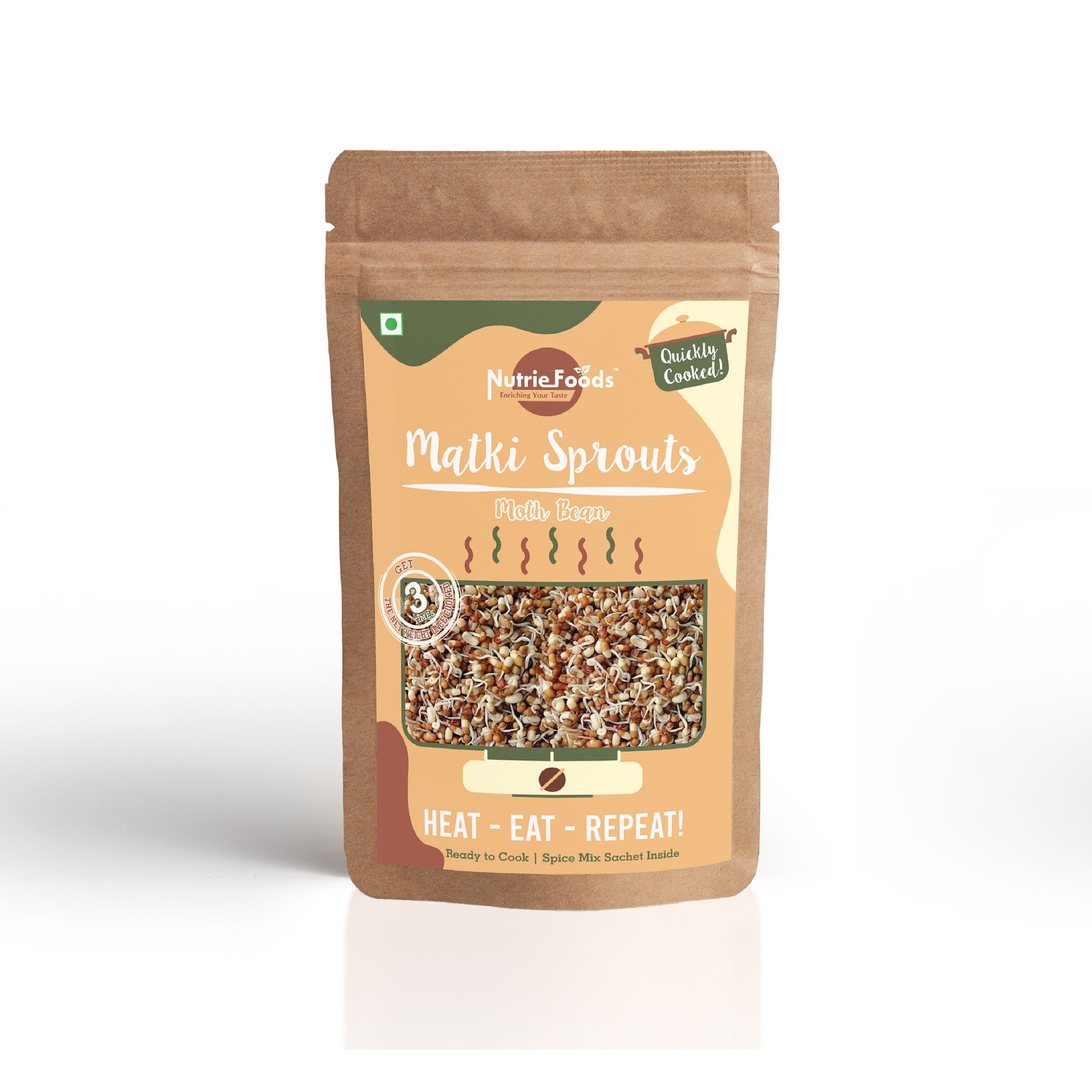Nutriefoods Ready to Cook Healthy Matki (Moth) Sprouts | Quickly Cooked with Spice Mix | Ready in 5 min | HEAT EAT REPEAT 200gm