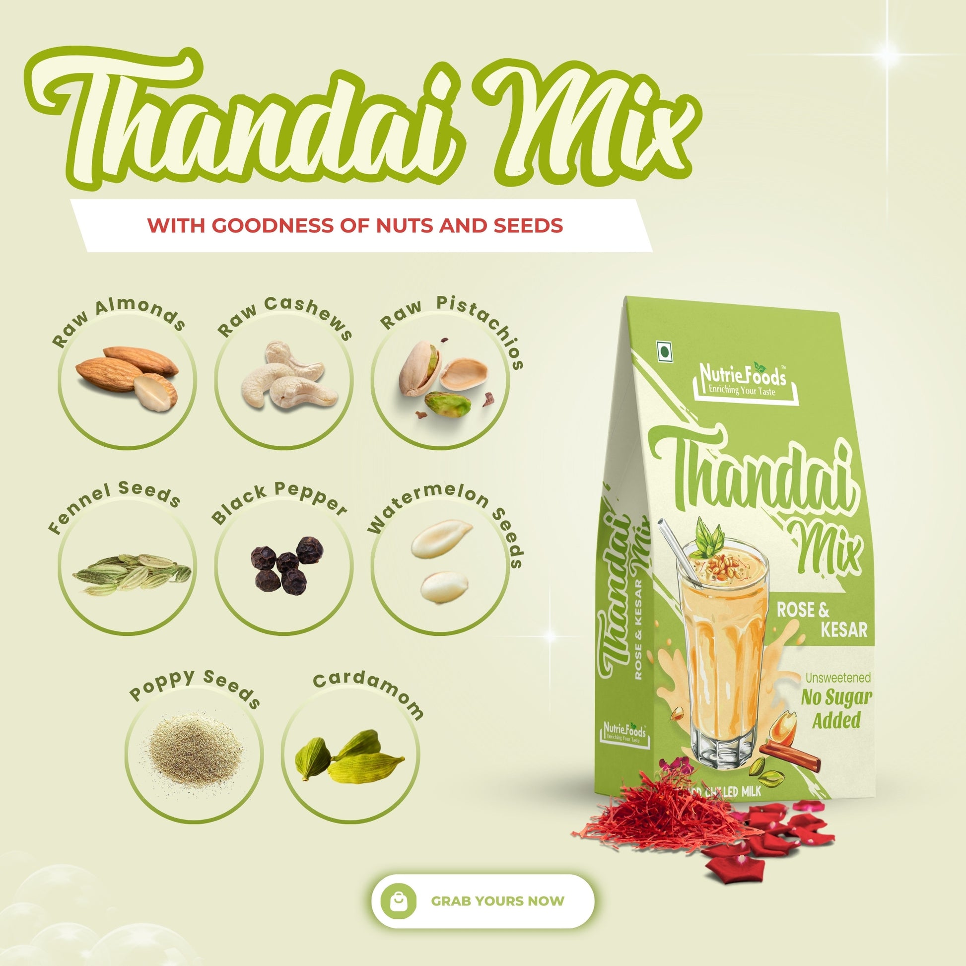 Thandai Mix- No Added Sugar | Instant Thandai Powder | With Goodness of Nuts and Seeds 200gm